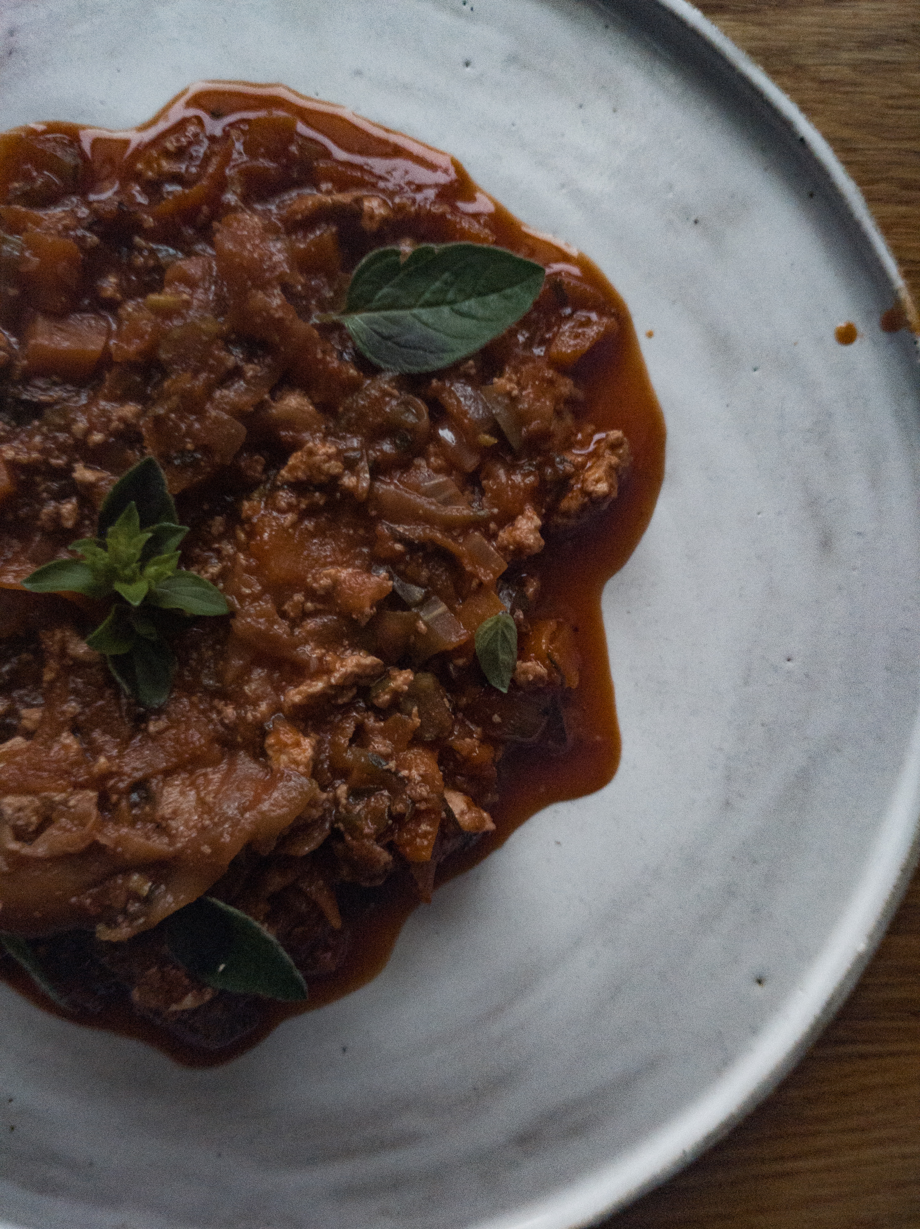 We are starting up with one of my all time favourites: Vegan Bolognese. It is not comparable to an actual one but it resembles a lot of the textures and flavours pretty well and it is a good, quick and easy option to make Spaghetti or Lasagna. It is also way quicker than actual Bolognese, since there is no Meat to add to the flavor profile. Soy sauce and Red wine together with the mushrooms still adding a lot of depth to the dish and helping to give you the umami flavor that you need for a good bolognese. I am using the same base for chili sin carne as well with adding cacao, beans, chilis and some more spices.